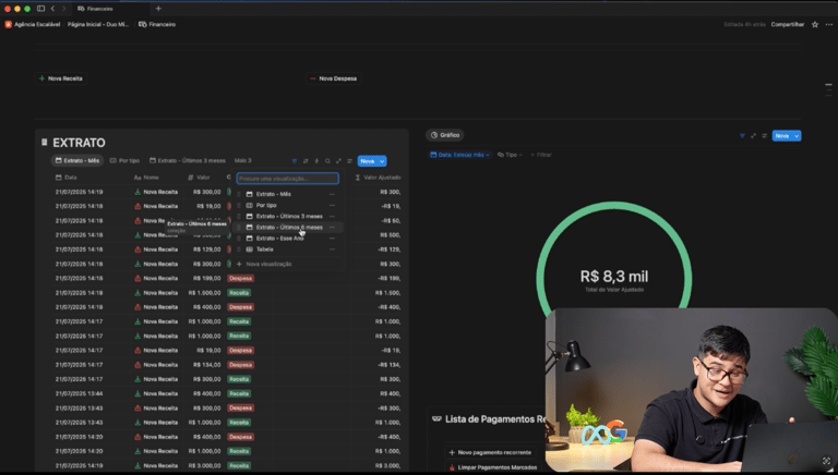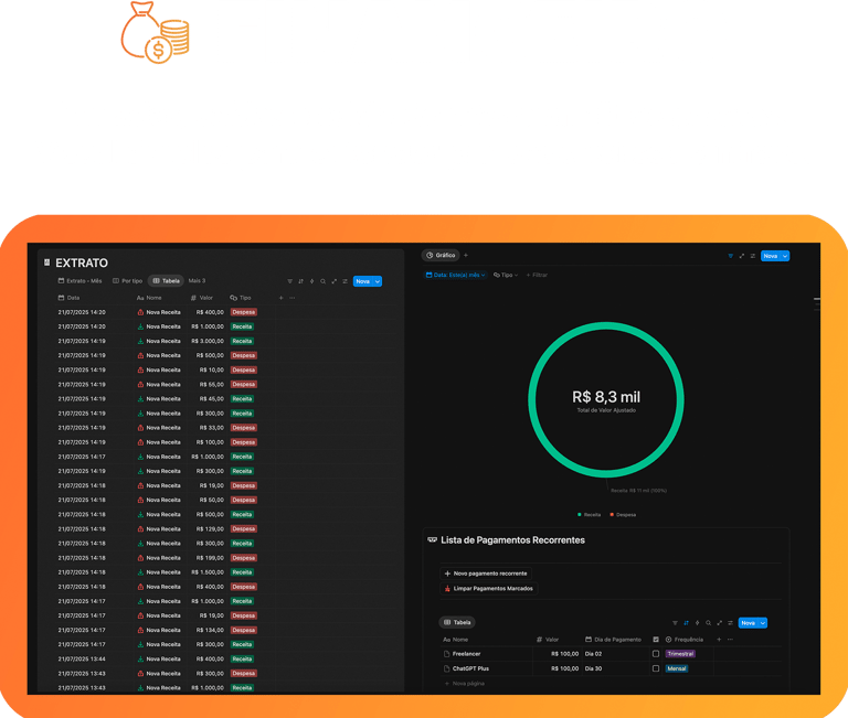 📊 Acompanhar entradas e saídas com um financeiro simples e claro