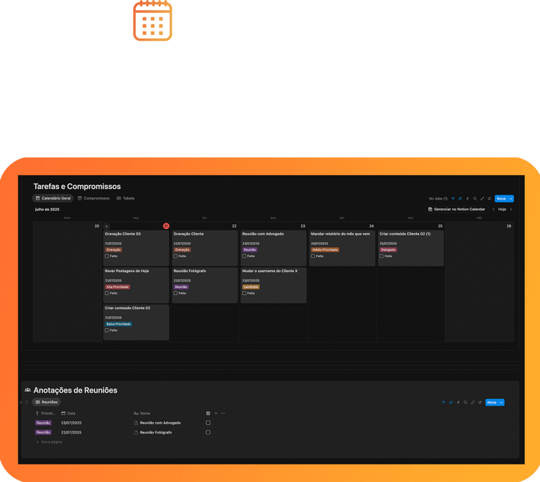 📅 Ter uma agenda visual com prazos, status e responsáveis